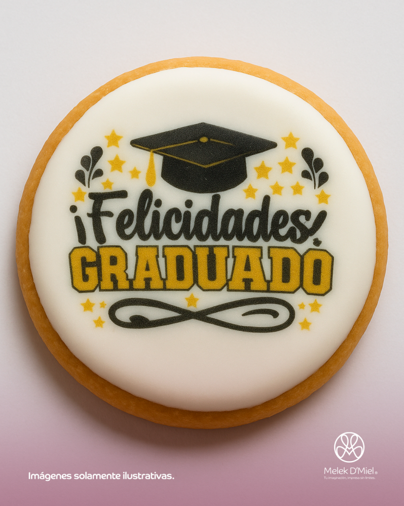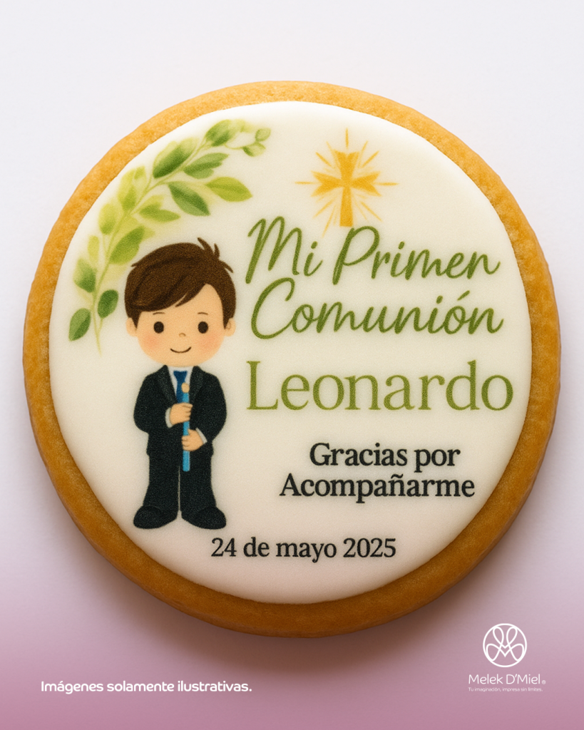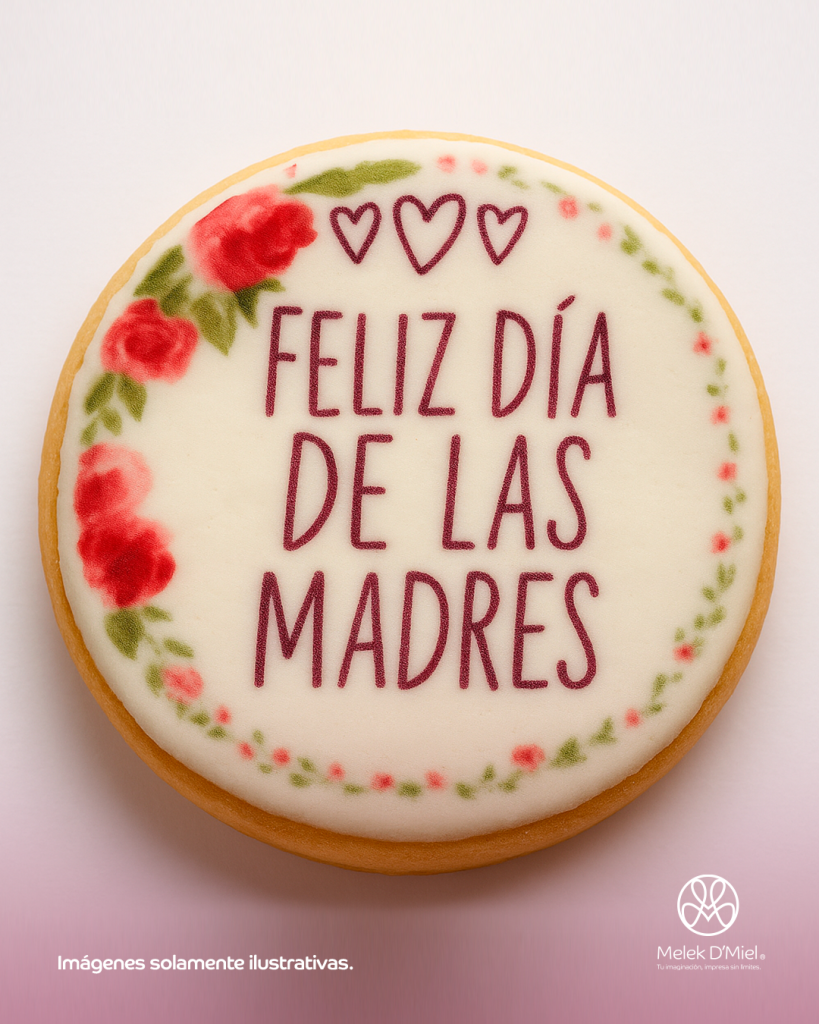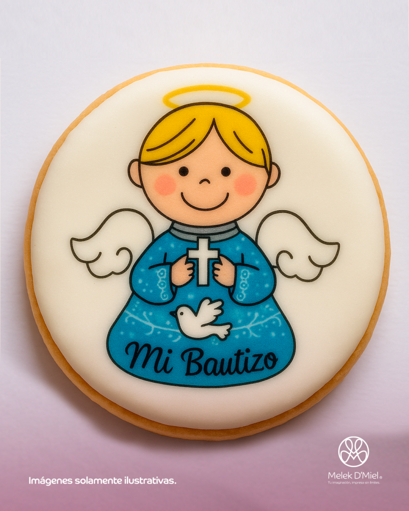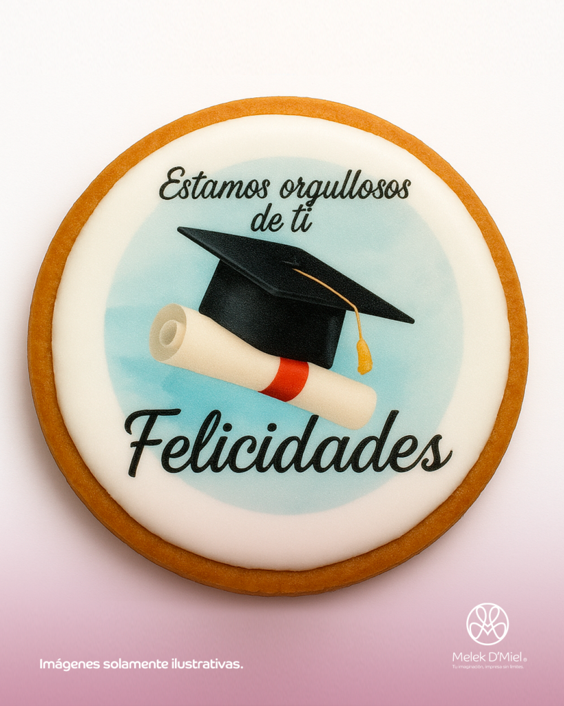 Las galletas miden 8 cm de diámetro, están horneadas artesanalmente con sabor a mantequilla y llevan un glaseado dulce perfecto para impresión comestible.